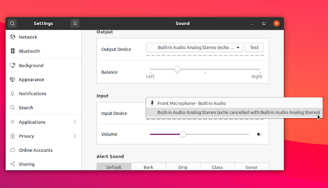 After this, look in your system's sound settings and the input and output devices should both have the default name, but with "echo cancelled with..." in parentheses, e.g. "Built-in Audio Analog Stereo (echo cancelled with Built-in Audio Analog Stereo)" like in the screenshot at the top of the article.